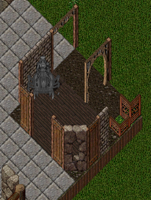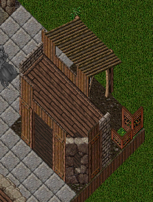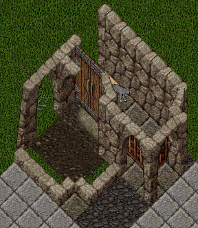 ぶっちゃけますと入口前面の丸太と石壁、円形の石壁を混ぜた凹凸のある壁