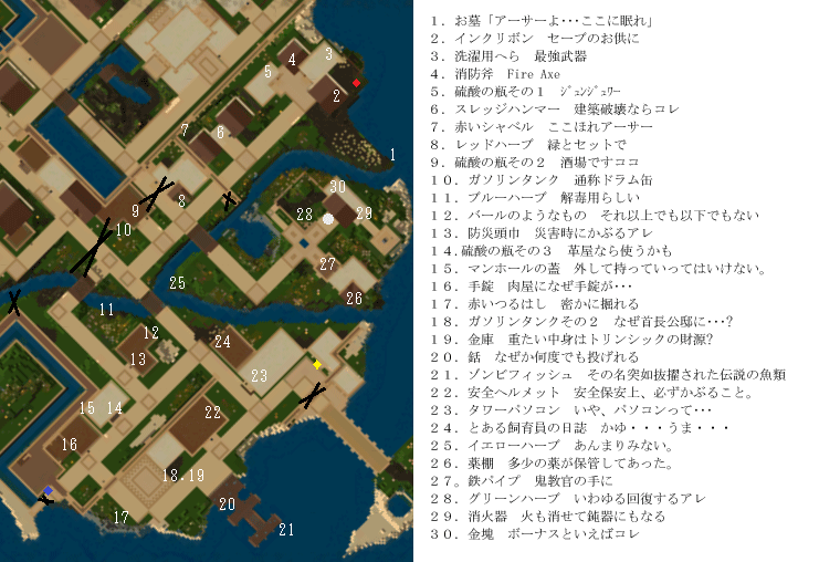 火炎瓶や金塊などアイテム類が豊富に設置してありました。