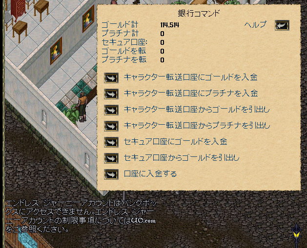 無料アカウントで銀行を開いた画面、アイテム保管庫は利用できない