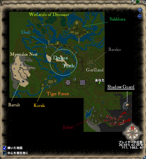『あなた』の場所がMoonGate、北西に進むとドラゴンタートル沸き