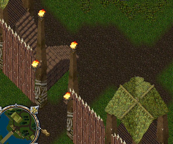 Sakkhra族の部落 正面入り口 巨大な二柱の篝火と櫓が目を引く
